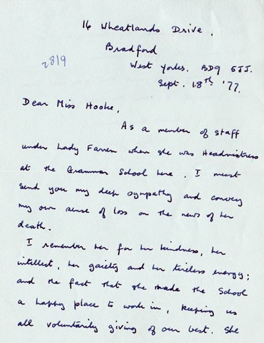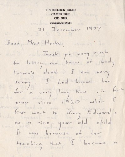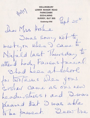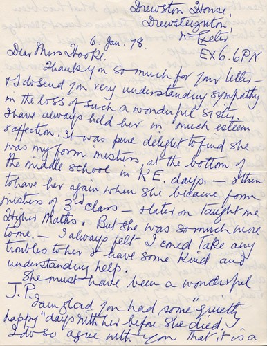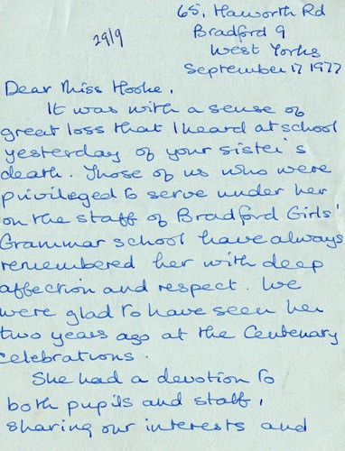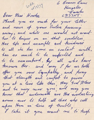 Below is an album of the letters. At the end is the order of service at her funeral and a letter of appreciation to George & John for their presence at the funeral, as close family members. Click the arrow on the right to read through them in turn.